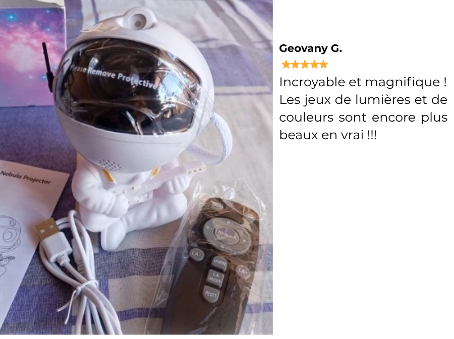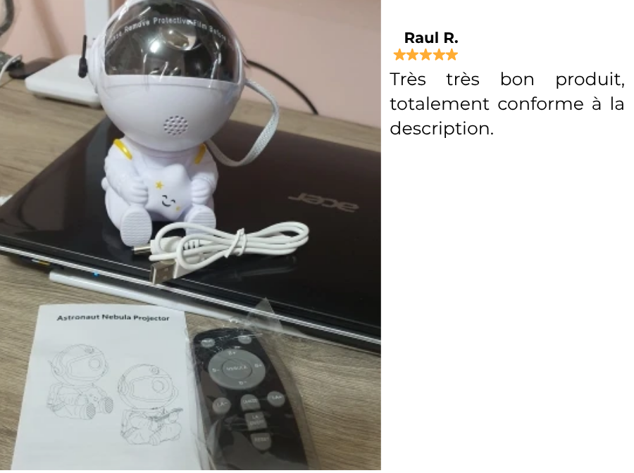 Non, absolument pas ! Notre astronaute fonctionne en mode ultra-silencieux. Aucun ventilateur ou moteur bruyant - juste une projection magique qui respecte le sommeil de toute la famille. Vous pouvez le laisser tourner sans craindre de réveiller votre enfant.